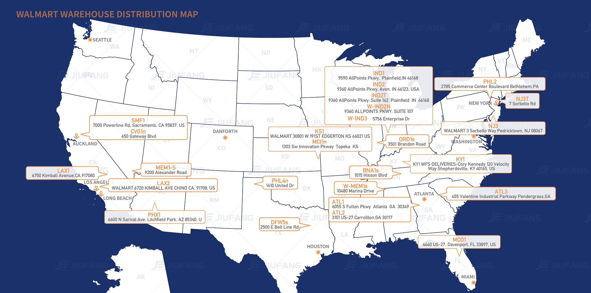 Locations of Walmart WFS Fulfillment Centers In The USA